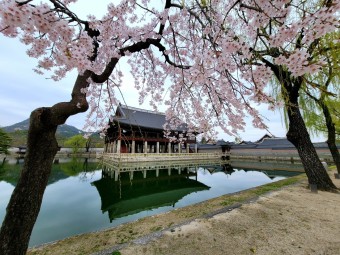 1. 경복궁 :  서울의 대표적인 궁궐 중 하나인 경복궁은 벚꽃이 아름답게 피어서 유명합니다.