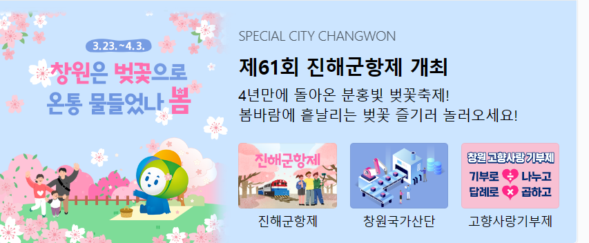 2. 진해국제벚꽃축제 :  경남 진해에 있는 이 축제는 국내 최대 규모의 벚꽃 축제로 유명합니다