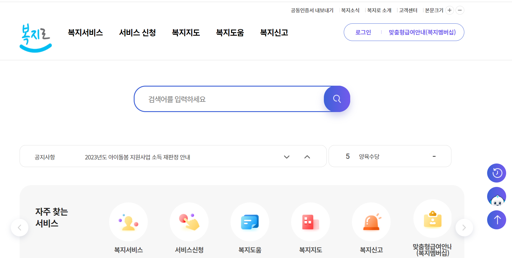 복지로 홈페이지로 바로가기