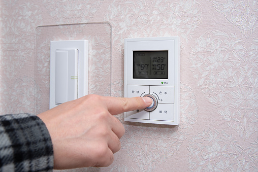 온수 온도를 설정하는 보일러 컨트롤러를 보면